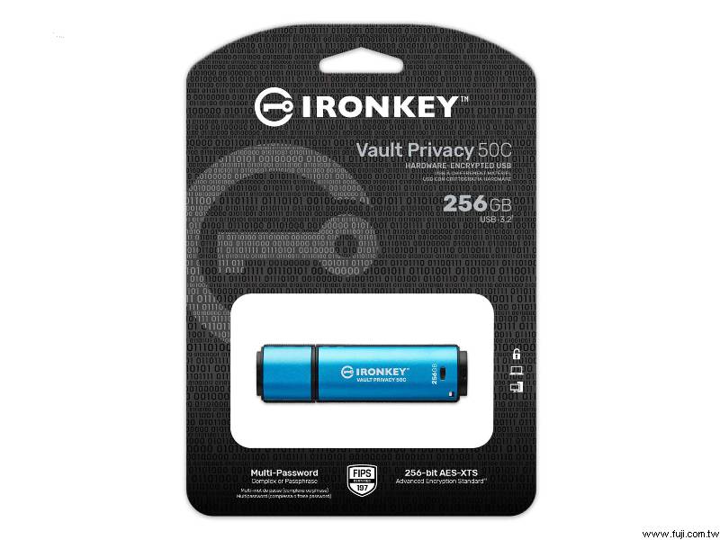 產品名稱:金士頓IronKey Vault Privacy 50企業級硬體USB-C加密隨身碟(256GB)  建議售價:16,000元