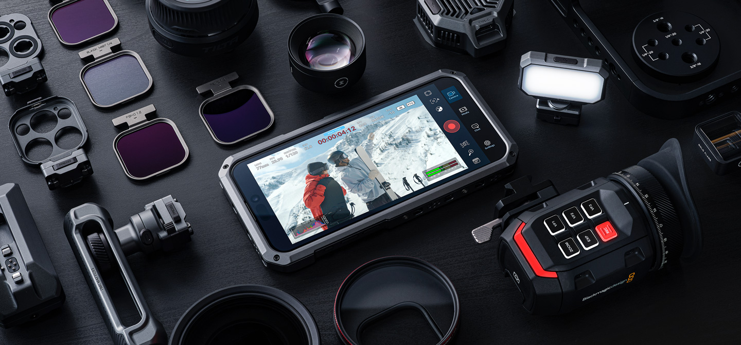 選用類型廣泛的專業配件,只用一台手機就能搭建出一套強大的攝影機裝配方案!您可以添加外部有線或無線麥克風進行專業錄音,使用現有的有線或藍牙耳機在拍攝期間監聽音頻。Blackmagic Camera可搭配使用外部HDMI監視器,讓您在更大的螢幕上查看正在拍攝的畫面,從而更加輕鬆地實現鏡頭構圖。您還可以使用Blackmagic URSA Cine EVF,獲得沉浸式拍攝體驗!甚至還支援使用手機外置鏡頭,使用SLR鏡頭時還可提供變形鏡頭壓縮畫面還原和圖像方向選項。您甚至可以添加跟焦器功能,或者錄製到外部SSD,獲得更長的錄製時間!