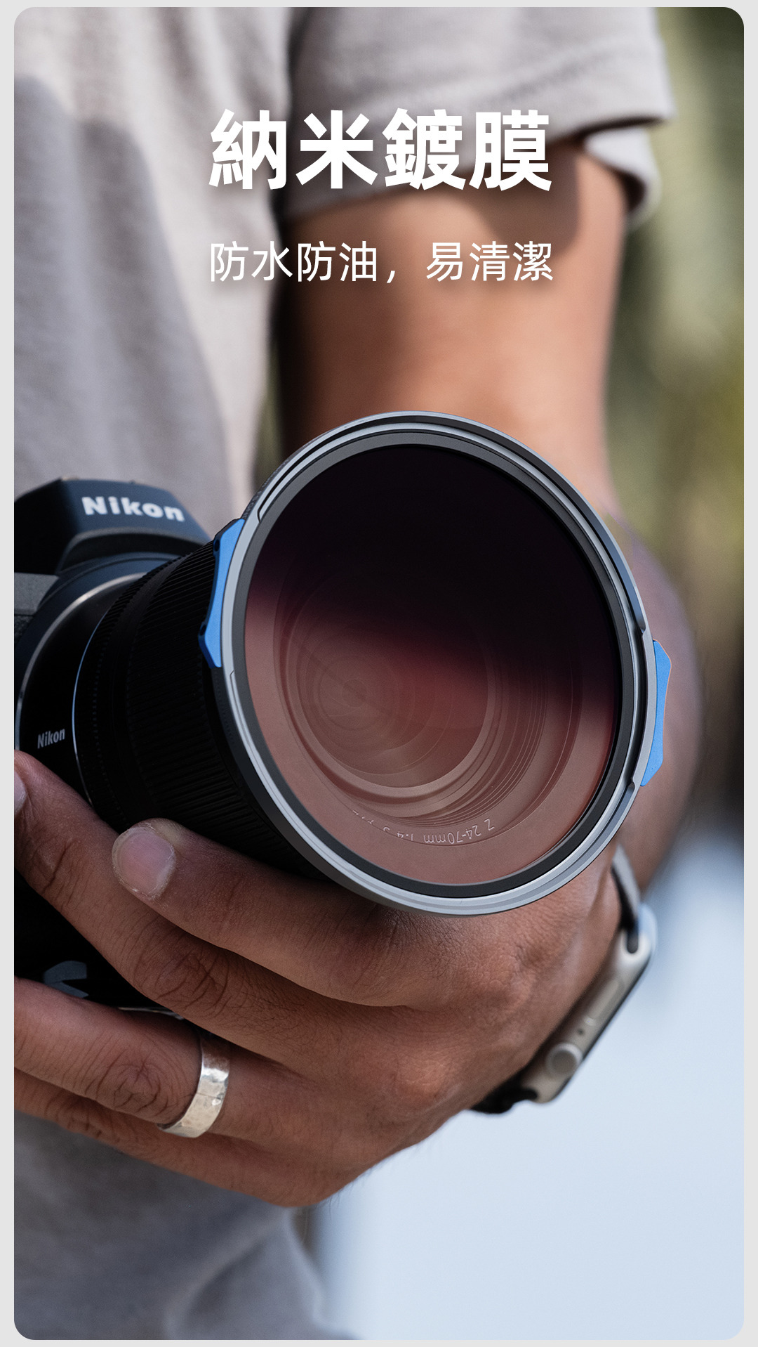 得益於特殊的NISI奈米塗層,濾鏡具有低反射、防刮和防水的特性。