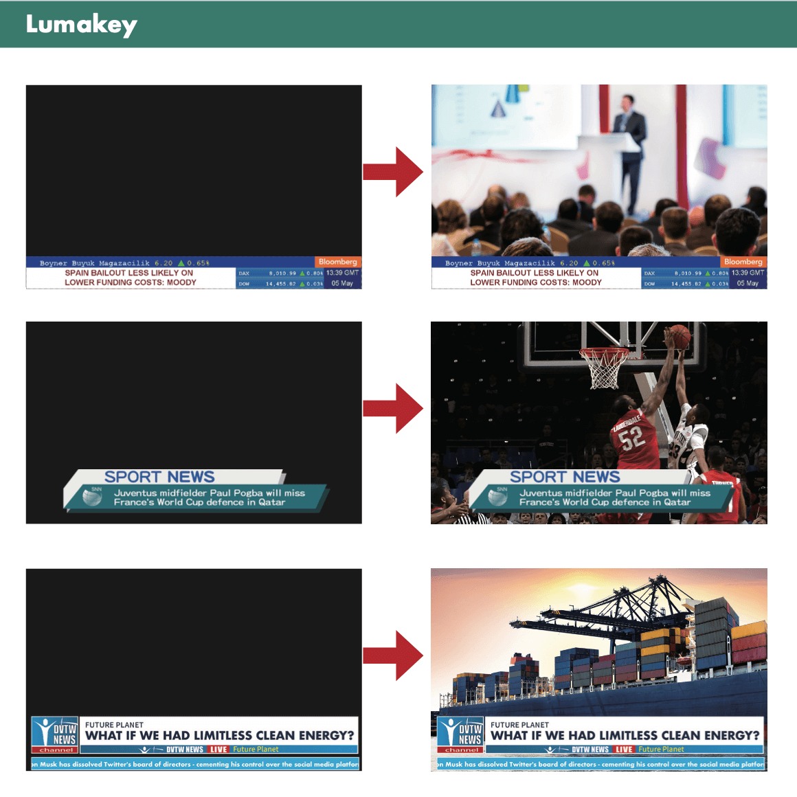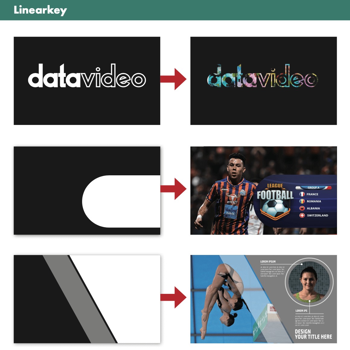 無論是常用的亮度去背, 用法普遍的 色度去背,自帶蒙太奇屬性的線性色度去背,與各式永遠置前的下游鍵的搭配,皆能大幅度的提升節目精緻度,提供更高層次的節目效果。
