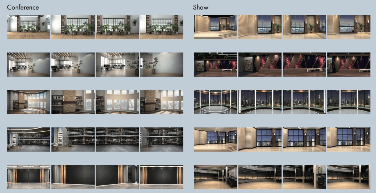 虛擬背景靜態圖片,可供左方、正面、右方、與正面遠景安全機位使用,特別適合用於會議直播與訪談節目拍攝使用