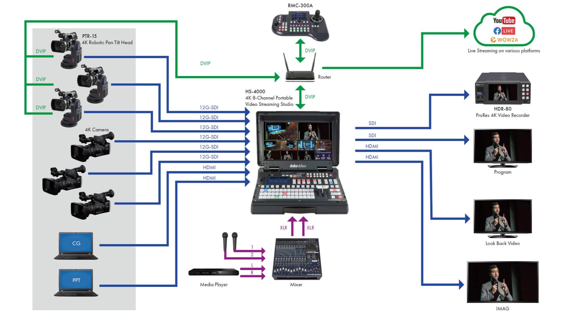 Datavideo HS-4000是一個全能的4K製作導播室,旨在為用戶提供一個全面的解決方案,製作廣電級的4K高畫質內容。
