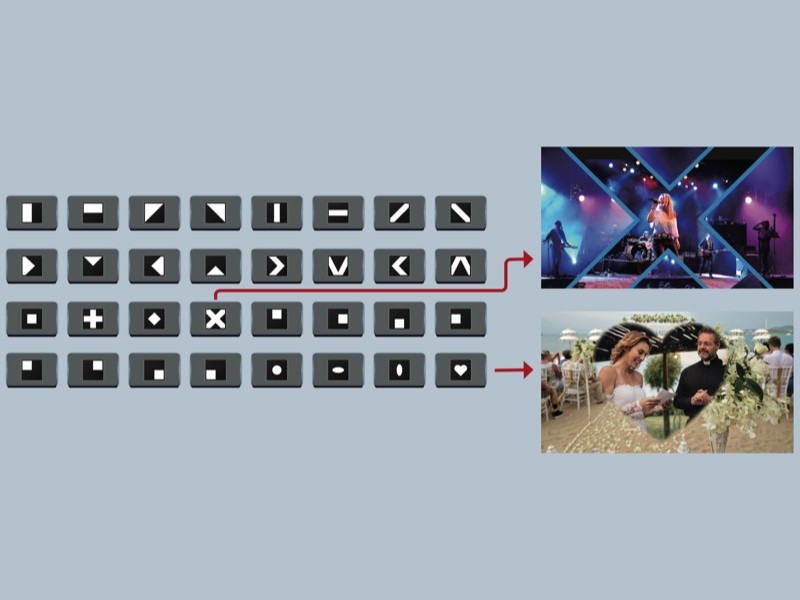 HS-4000提供了64種引人注目的WIPE轉場效果,可單獨控制邊框顏色、粗細、再加上邊緣的柔順等細節設定,讓您的WIPE 效果看起來就是與眾不同。