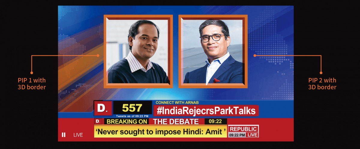 同時增加全 3D 的子母畫面外框,並做色彩 的自定義搭配,充分體現進階的 PIP 效果。