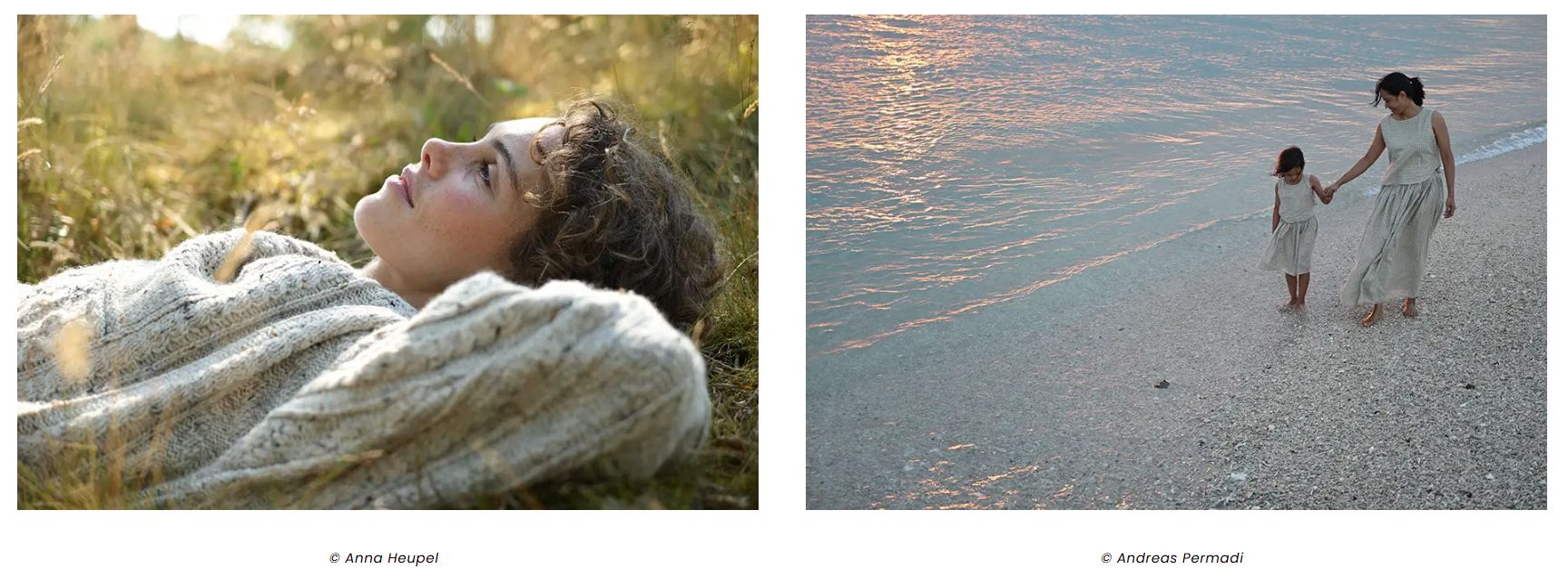 Mother and Daughter walking along a white sandy beach at dawn photographed with