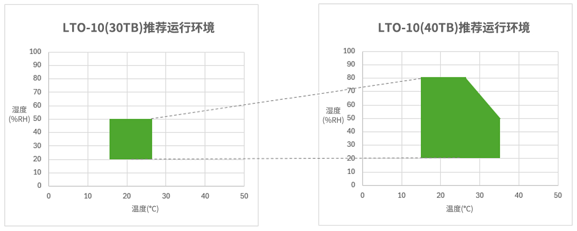 LTO-10(30TB)和LTO-10(40TB)推薦運行環境比例(溫度和濕度)