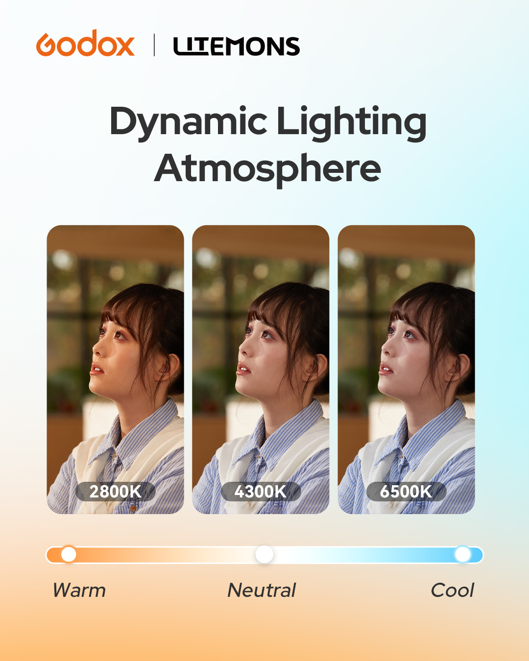 - 雙色溫調節:2800K–6500K自由切換,亮度 0–100% 無級調光,滿足不同場景需求。