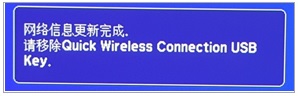 第三步:插入USB Key後,投影機的網路資訊將傳輸並儲存至USB Key。當投影機畫面出現圖5所示的提示資訊後,請將USB Key從投影機上拔出。