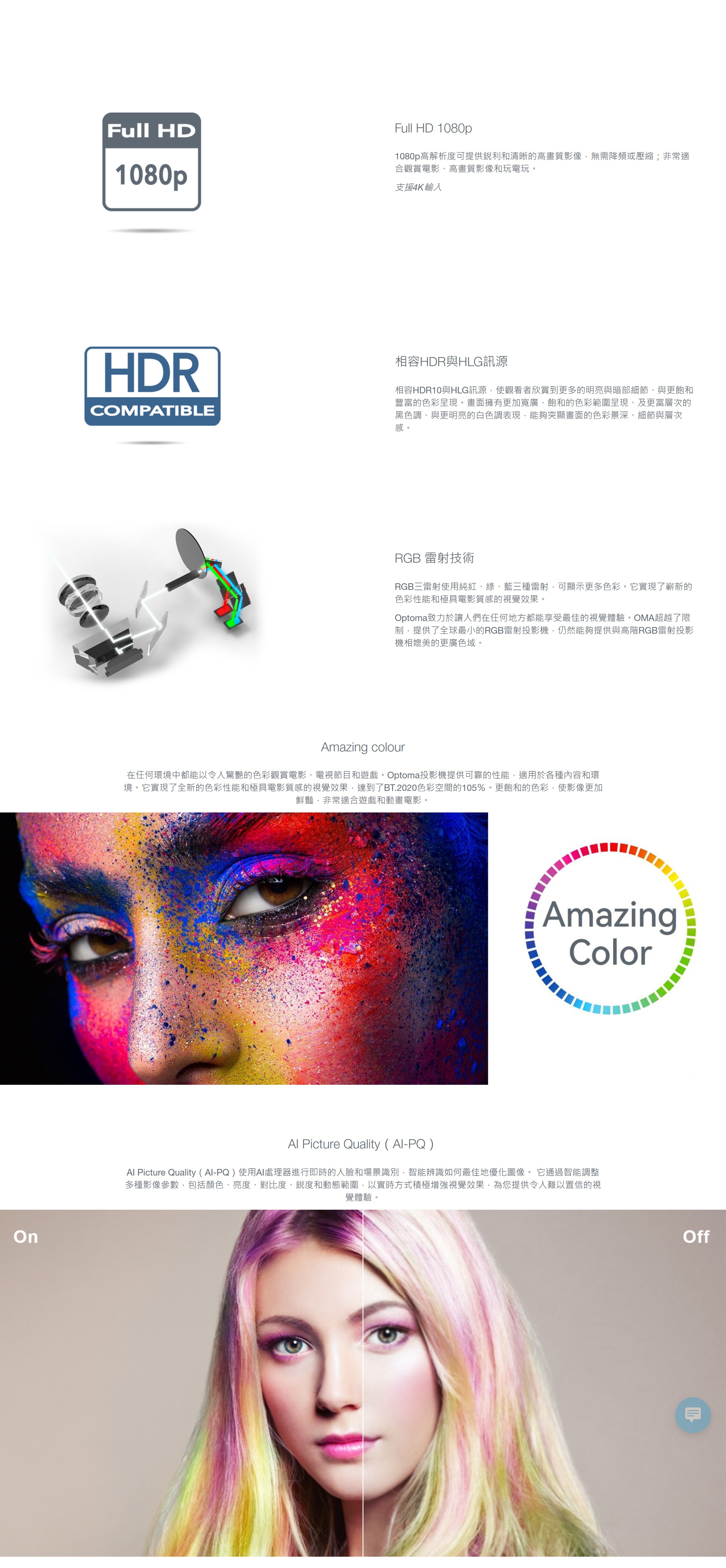 採用優質的 RGB 3雷射光源技術和高解析度 1080p,OMA-S 擁有 1500HK