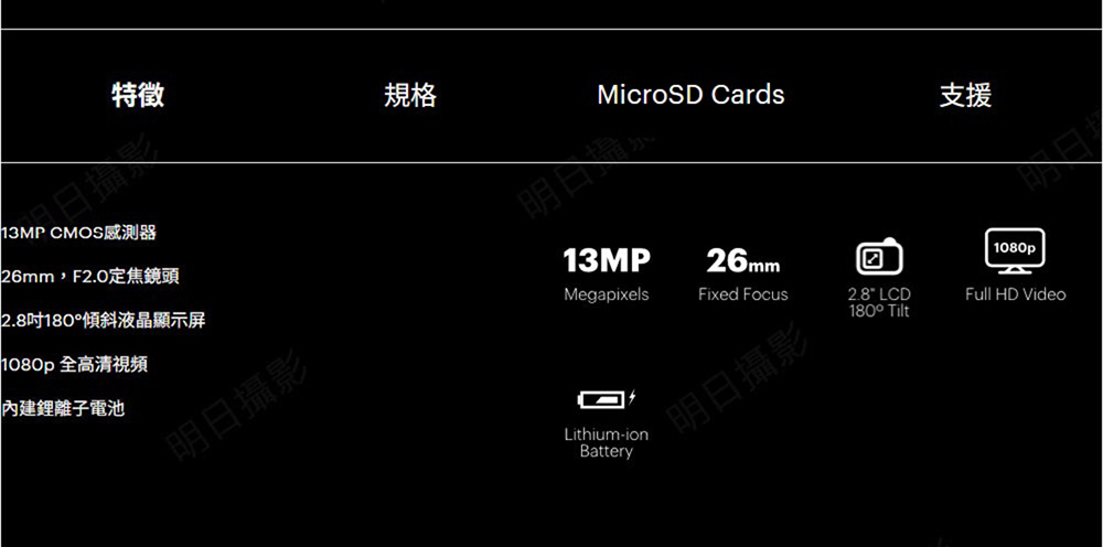 相機沒有內存,必須另配 Micro SD 記憶卡 (不超過 32GB)