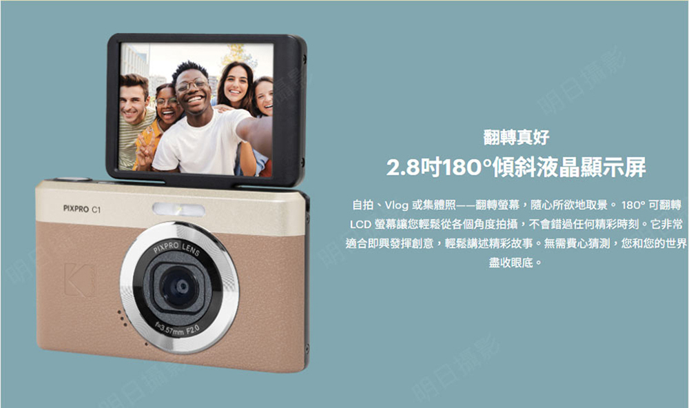 KODAK 柯達PIXPRO C1 復古數位相機 自拍翻轉螢幕 口袋型相機 原廠公司貨