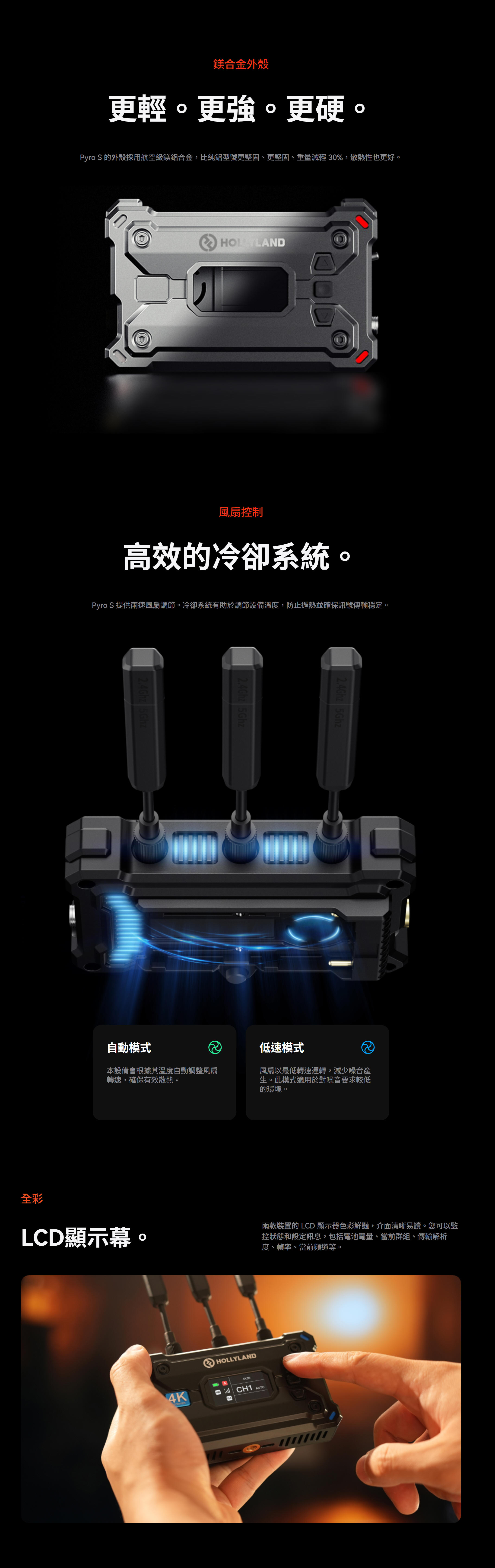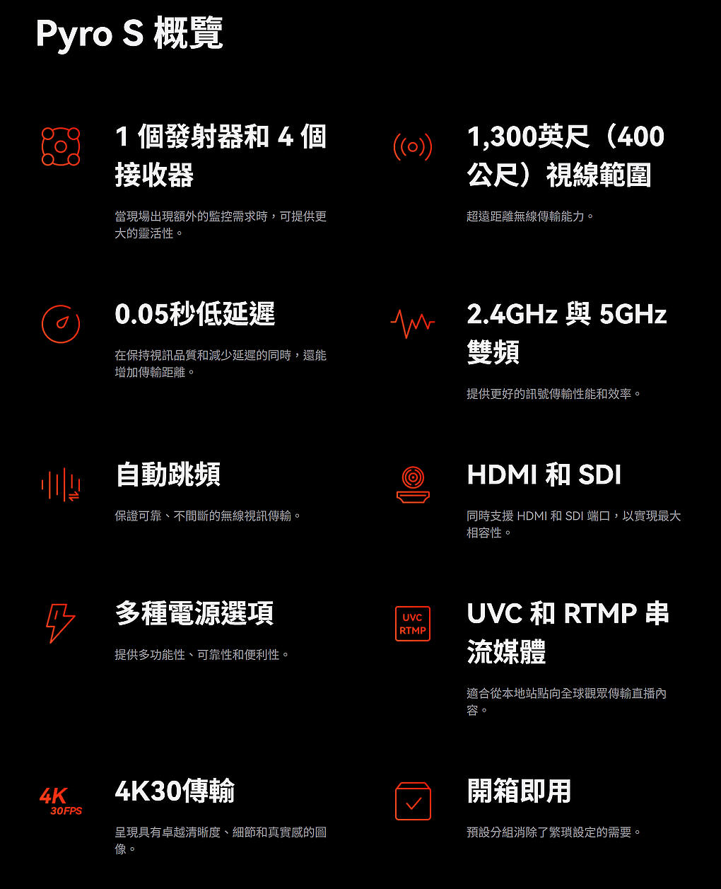 技術,確保可靠的傳輸,並提供多種模式以滿足您的實際拍攝需求。 Pyro S