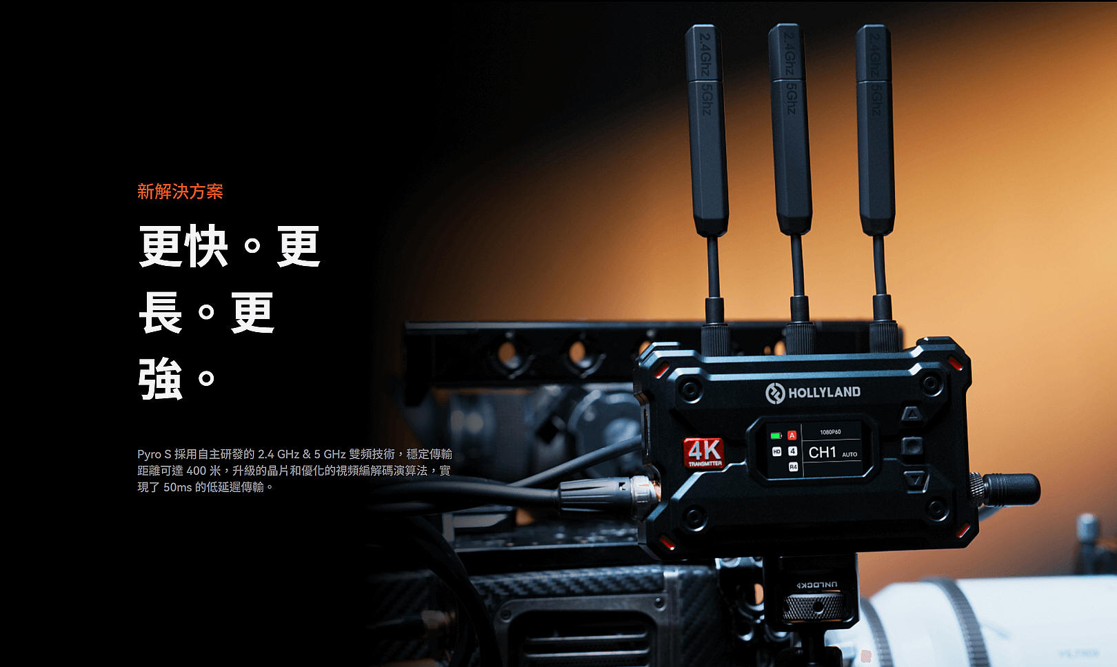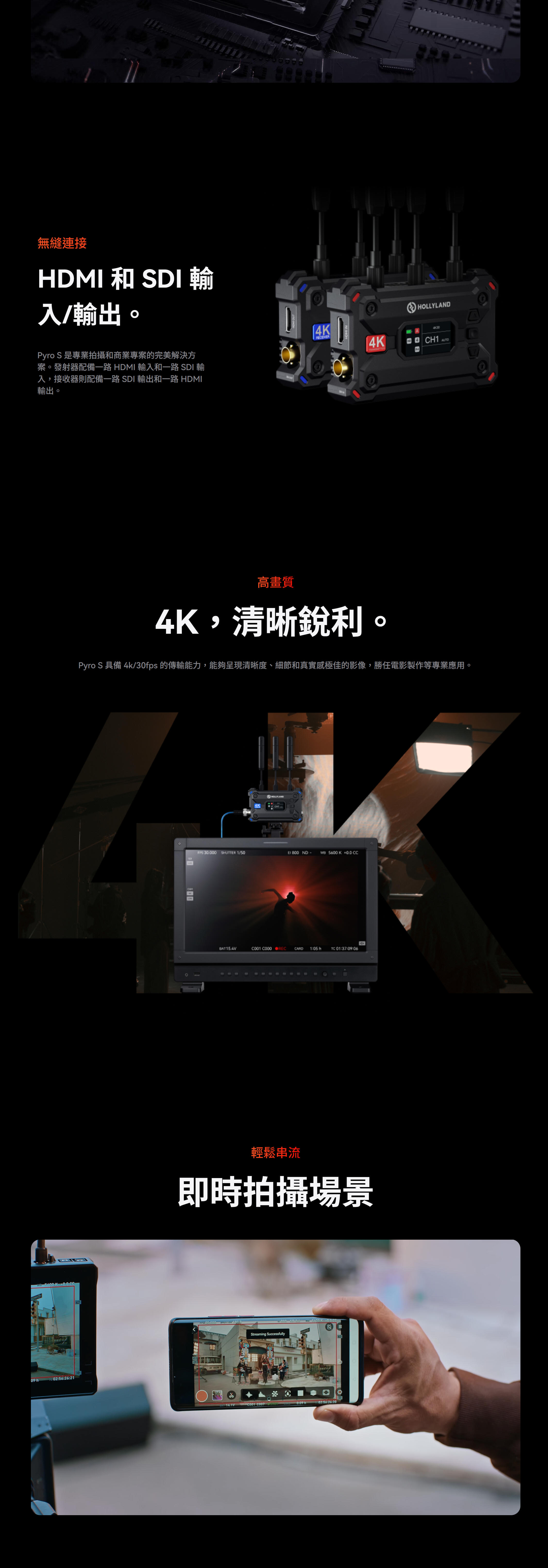Pyro S 是 Hollyland Pyro 系列的突破性產品,它重新定義了無線視訊傳輸。 Pyro S 支援 HDMI 和 SDI