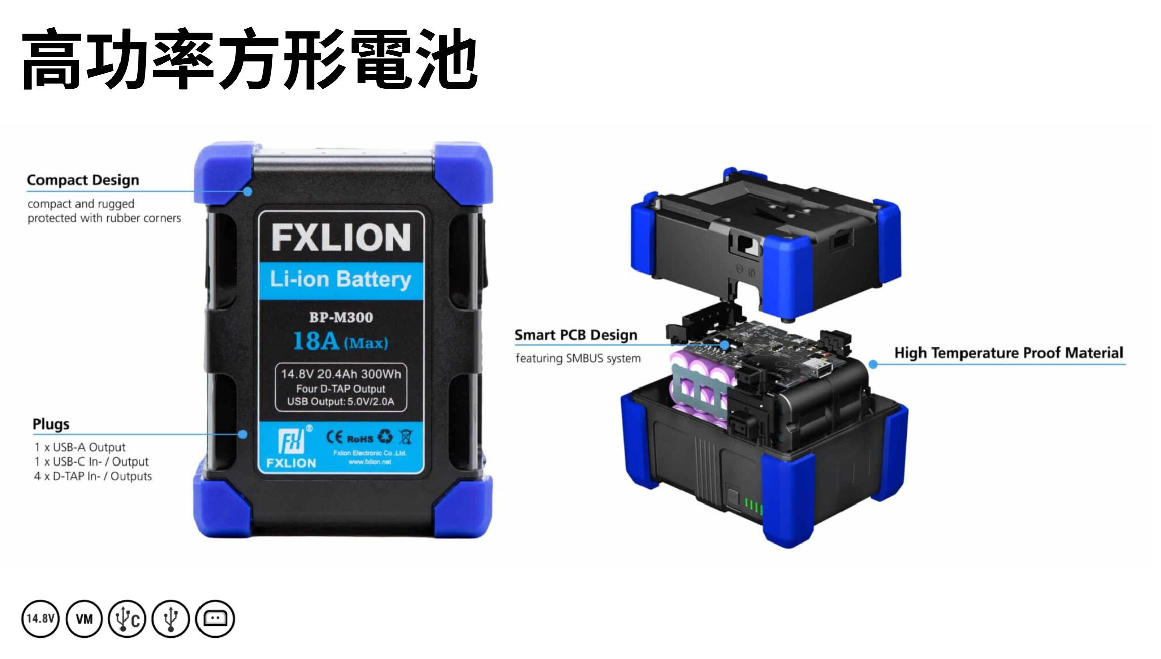 高功率方形電池系列!由於採用了更緊湊的電芯設計,這款電池比上一代產品更堅固耐用,不易損壞!我們對它進行了大量的測試,例如從不同高度跌落等。橡膠邊角提供更佳支撐,能夠從地面反彈並吸收部分重力。所以,如果您在拍攝現場不小心讓電池掉落,請放心!