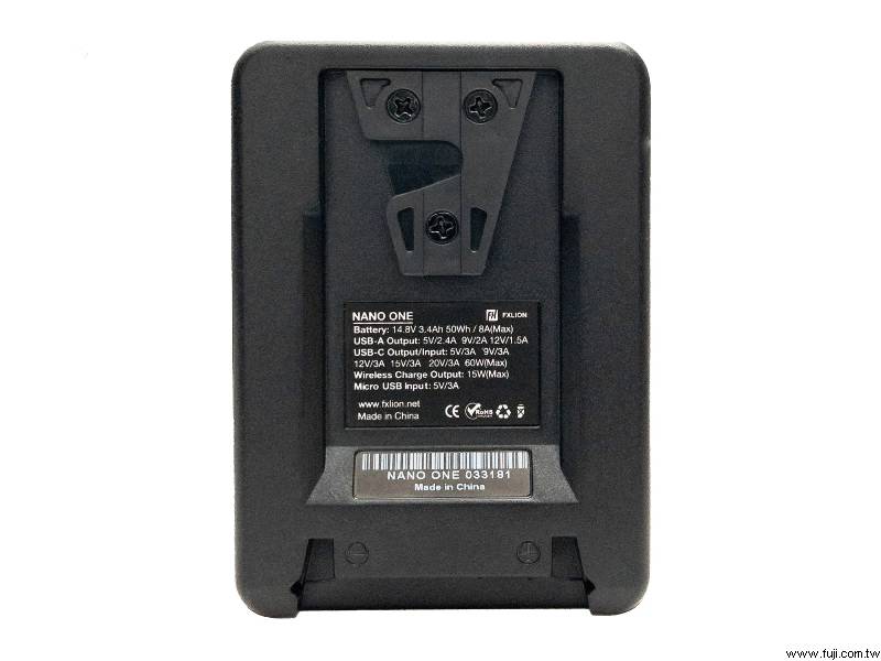 這款 14.8V 電池容量為 50Wh,工作電流高達 8 安培。它配備 D-Tap 輸入/輸出、USB-C 輸入/輸出、USB-A 輸出、Micro USB 輸入和無線充電輸出。具備智慧通訊功能,可顯示電池循環次數、內部溫度、充電/放電時間。