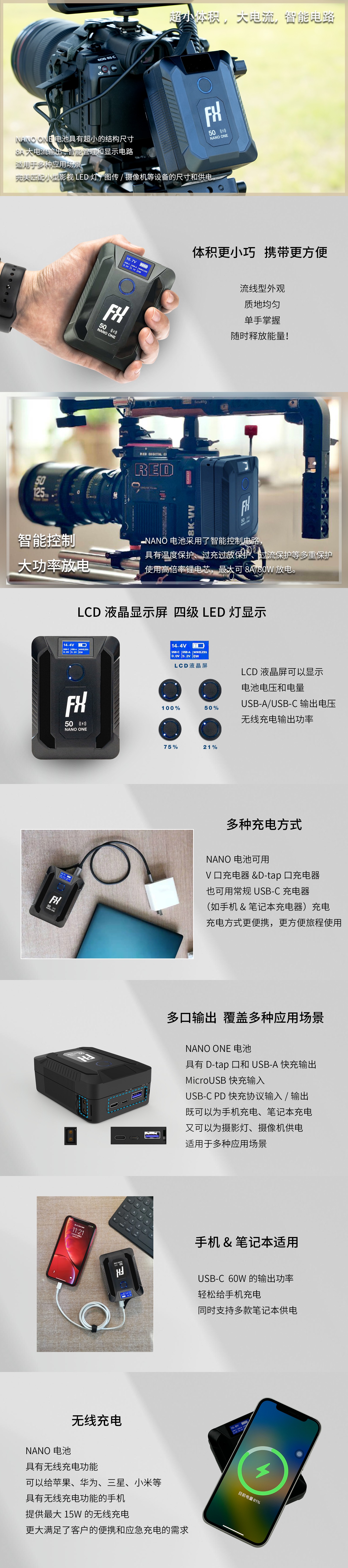 不但可以為LED燈、攝影機供電,也可以為手機、筆記型電腦充電,適用於多種應用場景
