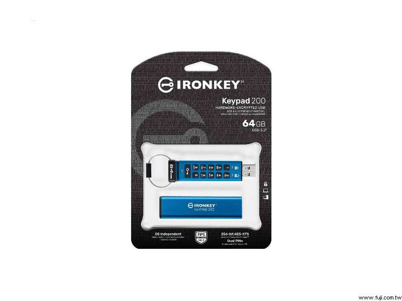 Kingston IronKey™ Keypad 200 是一款獨立於作業系統外的硬體型加密 USB 隨身碟,附一個具字母和數字的鍵盤以便於輸入 PIN