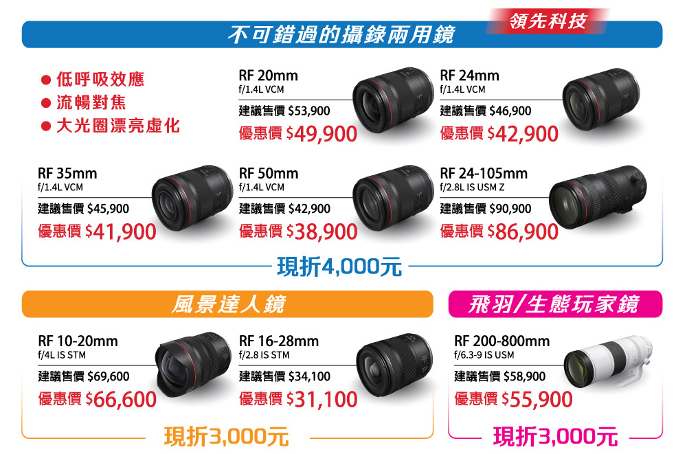 CANON 佳能鏡頭 2026年 1~3月優惠