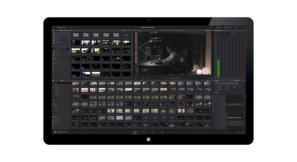 DaVinci Resolve 12.5.2軟體升級可為運行最新URSA Mini攝影機操作軟體的URSA Mini攝影機所拍攝的RAW檔提供更多元資料嵌入支援。這一新版操作軟體為URSA Mini用戶提供了一個耳目一新的Slate(場記板)功能,只需簡單的點按和滑動手勢即可操作。此外,新版操作軟體還可提供資料登錄提示功能,並具備常用拍攝資料詞庫,能為用戶帶來無比快捷的元資料錄入功能。這意味著如果URSA Mini攝影機用戶搭配使用DaVinci Resolve 12.5.2軟體的話,就能在剪輯和調色時充分利用這一新的元資料來管理素材、創建智慧媒體夾、篩選片段等功能。