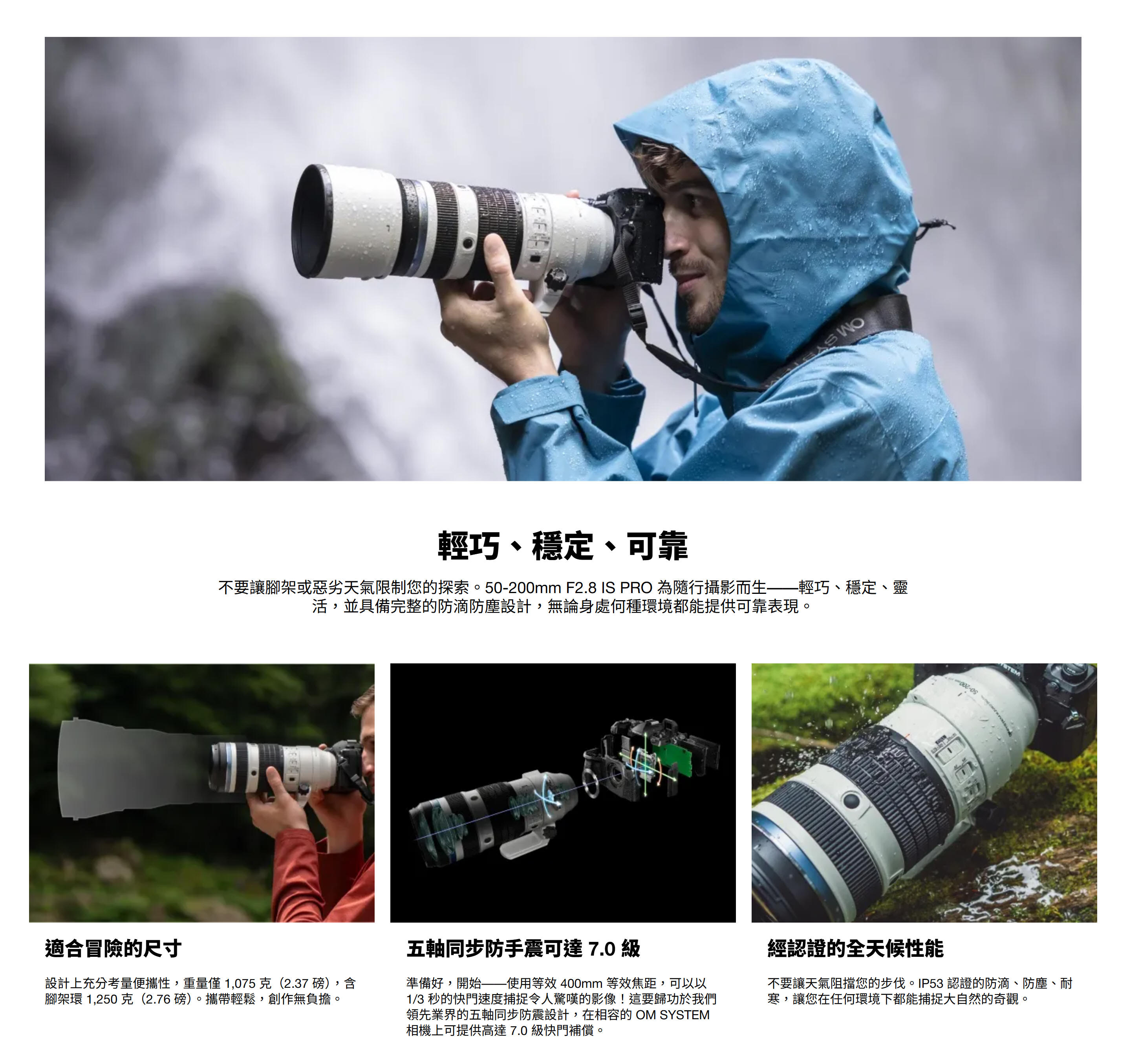 M.ZUIKO DIGITAL ED 50-200mm F2.8 IS PRO內建光學防震系統,並兼容5軸Sync