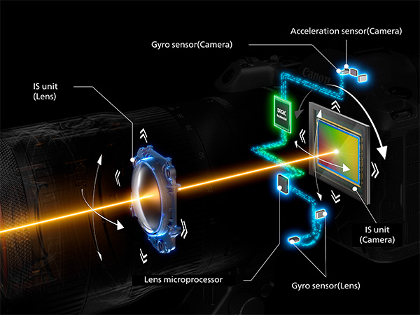 RF鏡頭配合時在畫面中央及周邊分別提供高達 8.5 級及 7.5 級防手震效果12。配合相容鏡頭時亦支援周邊協調控制。