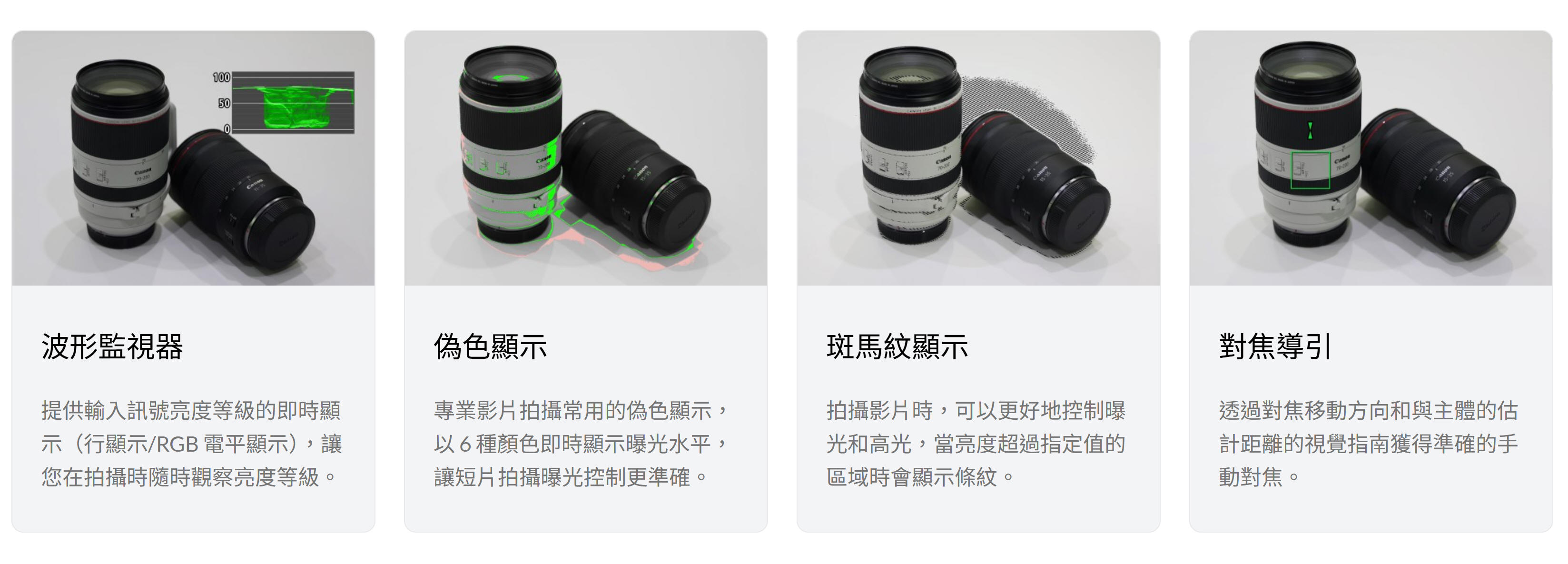 Picture設定,讓使用者能精細調整色調曲線、Gamma 與色彩反應,或選用 Canon Log 2 / 3、BT.709